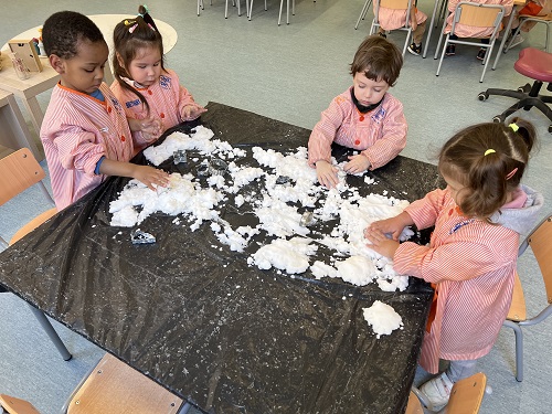 FEM I DESFEM: TREBALLEM LA COMBINACIÓ DE DIFERENTS ELEMENTS AMB TEMÀTICA D’HIVERN PER ELABORAR MANDALES. CONSTRUMONS: ALS NOSTRES MINIMONS HI PODEM TROBAR MÉS ELEMENTS PER REPRESENTAR L’HIVERN, COM FIGURES DE POREXPAN DE DIFERENTS FORMES QUE FIGUREN BLOCS DE GEL O NEU. SOMIEM: SEGUIM FENT LA NOSTRA COMPRA AL MERCAT, APRENEM A ESPERAR EL TORN, A