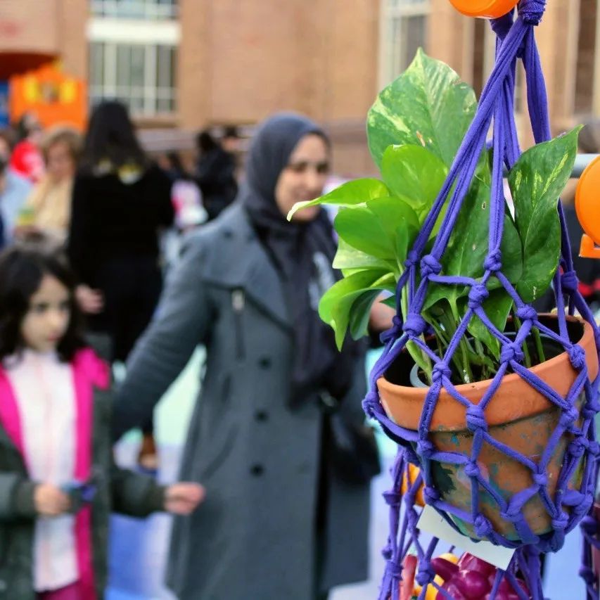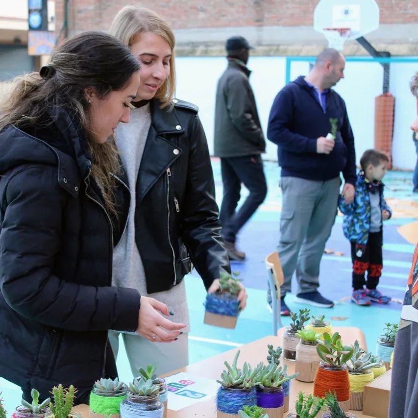 Parades de productes sostenibles dissenyats en relació als projectes de cada comunitat d’alumnes i creats amb material reciclat i respectuós amb el medi ambient.