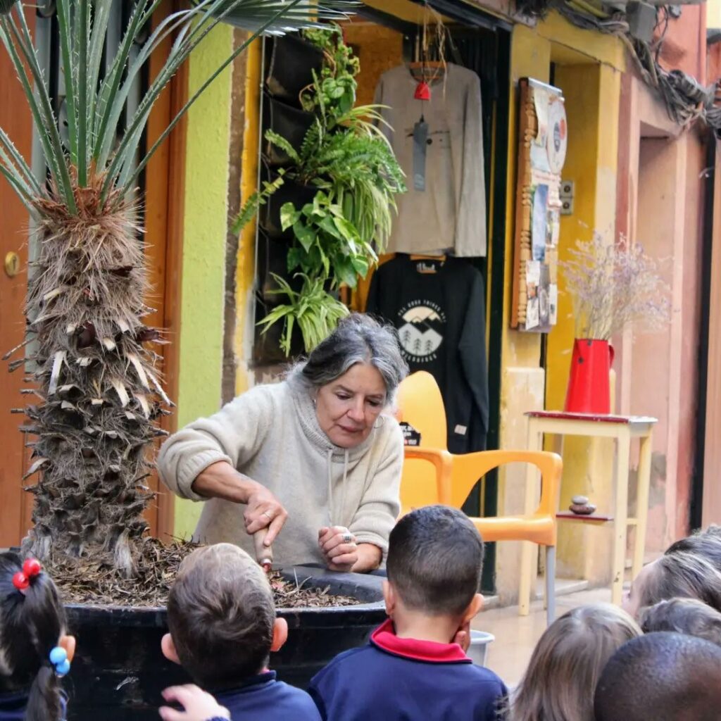 “Esta jardinera está cuidada y cultivada por El Árbol y los niños y niñas de la Escola Prat de la Riba. Plantamos especies locales que seguro de reconocerás. ¡Observa!”