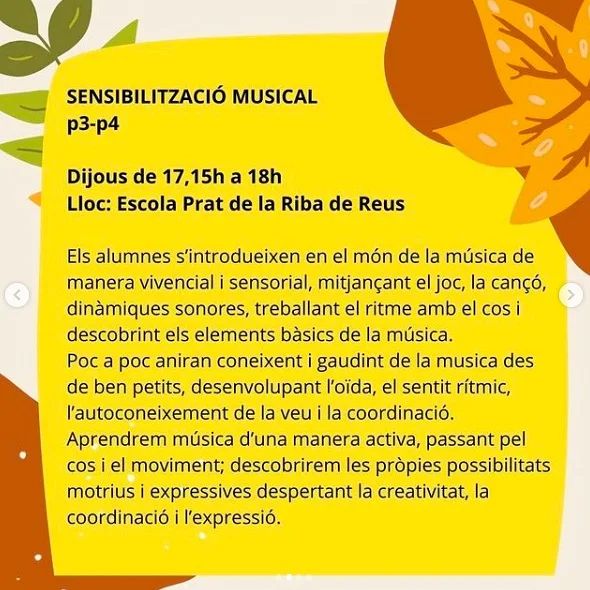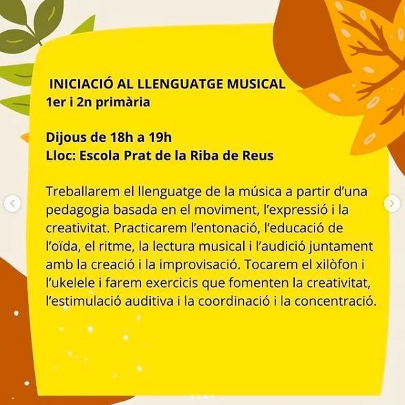 Molt contents us anunciem la nova col·laboració amb Gínjol de Reus, per oferir classes d’Iniciació a la música a les instal·lacions de la nostra l’escola!