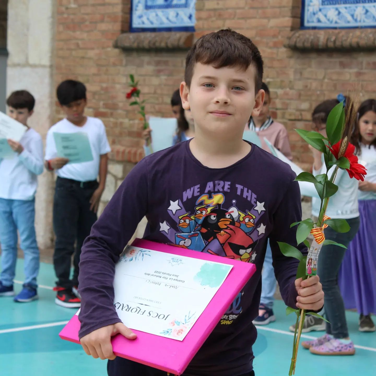 Gaudim de les composicions literàries que han creat tots els infants de l’escola, una tradició que potencia les qualitats artístiques i premia les obres destacades amb una flor natural.