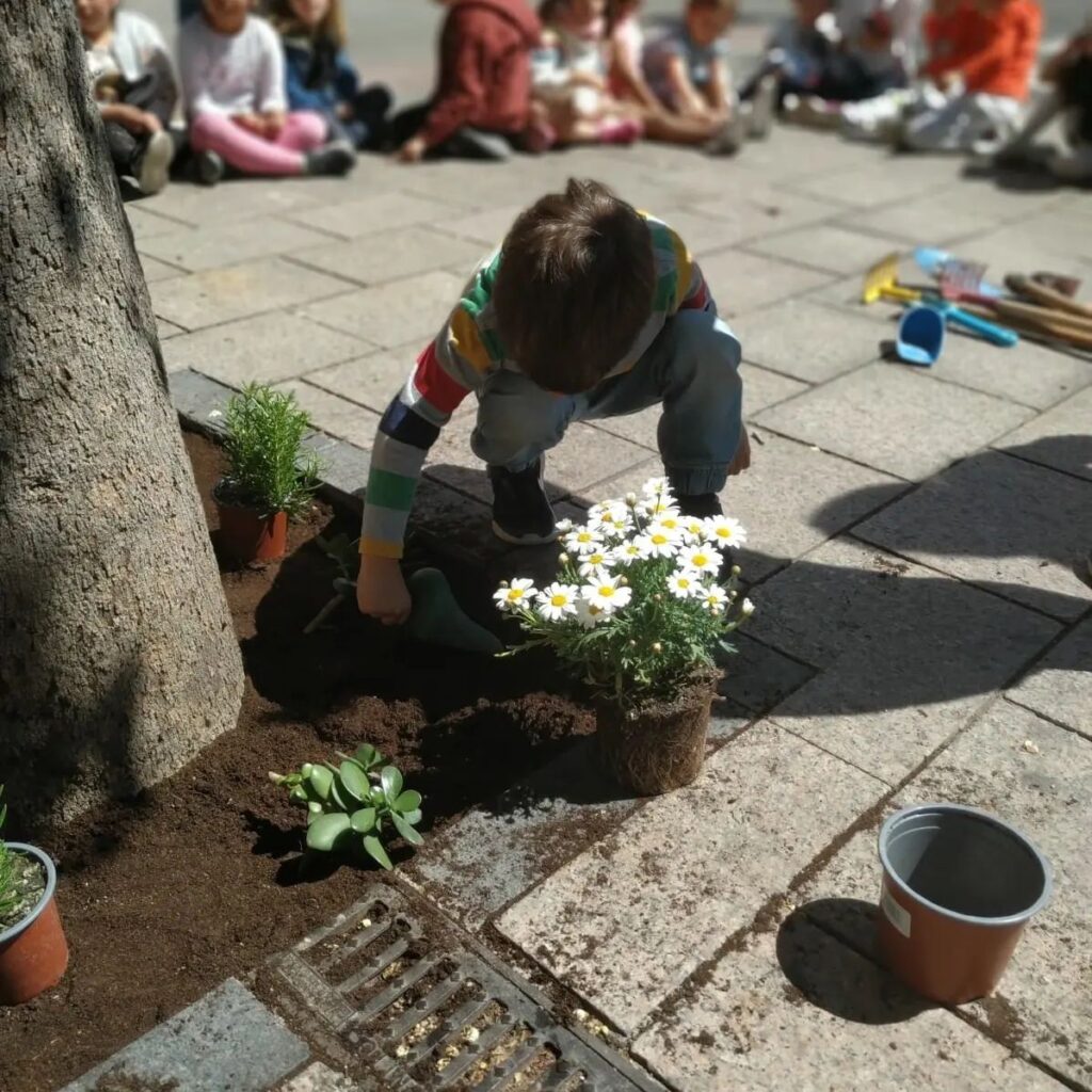 Els infants de la Comunitat de Petits hem decidit actuar. Renaturalitzem el barri sembrant les paraules apadrinades de l’escocell de la botiga El Arbol i amb les plantes de Flowers 4 wedding Flors Reus.