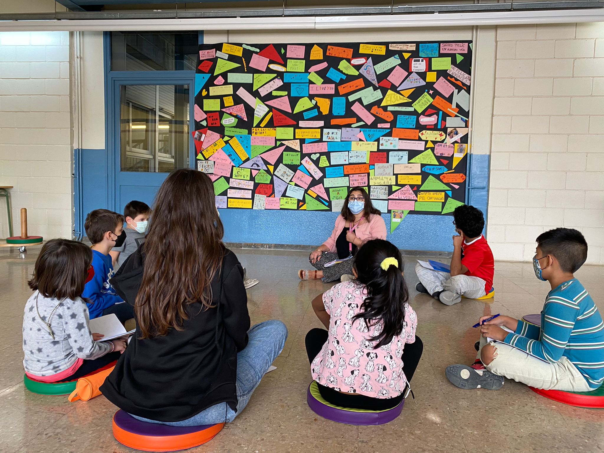A partir de les accions pensades el curs passat i que estan al mur de colors, els delegats i delegades de cada classe han parlat de quines 10 accions són més importants per millorar la convivència. Cada grup tindrà una acció escollida pel seu delegat o delegada i entre tots i totes farem un dibuix cooperatiu, una foto de grup, un collage, etc. que representi aquest propòsit.