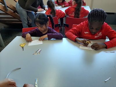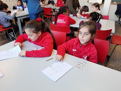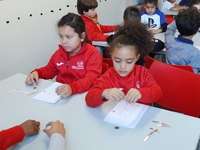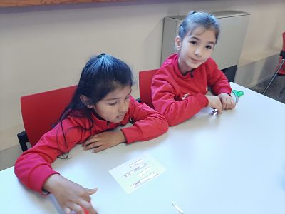 Allà vam realitzar un taller on vam poder fer el nostre propi robot i vam aconseguir il·luminar-li el nas!!! Això va ser gràcies a la creació d’un circuit elèctric tancat i una llum led.