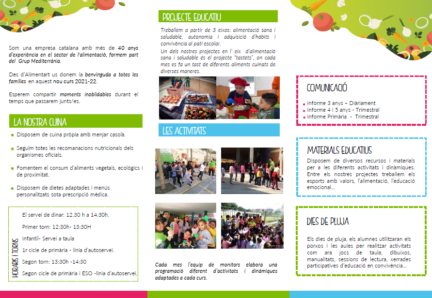 Us adjuntem aquest tríptic amb informació rellevant sobre el servei de menjador de l’escola del proper curs 2021-2022. Gràcies i que tingueu un bon dia!