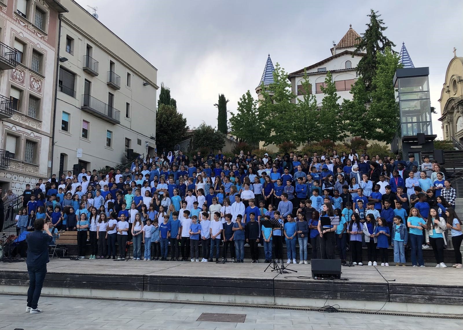 El passat divendres 24 de maig les escales de la plaça Fra Bernadí es van omplir divendres amb més de 300 alumnes de tots els centres escolars de Manlleu, en un espectacle musical que tenia com a temàtica el desplaçament infantil forçat. Els protagonistes de la nostra escola van ser els nens i nenes de 4t.