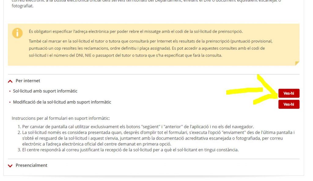 Baixeu avall fins on diu “Per Internet” i cliqueu-hi.