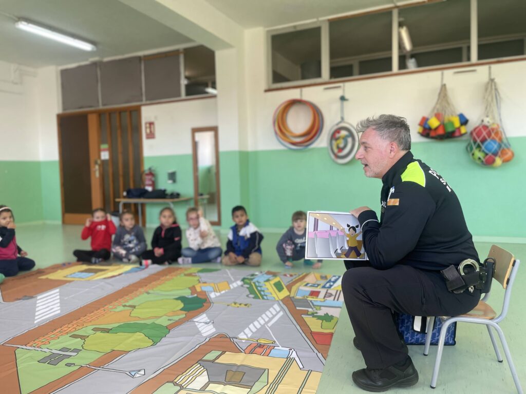 Fa uns dies, els nens i les nenes d’I4, vam rebre una visita molt especial. El Xavi policia de Sant Boi, ens va explicar com circular per la via pública, tant si som vianants com si anem en cotxe. Per acabar la sessió, va venir un gos de la unitat canina, i ens van explicar