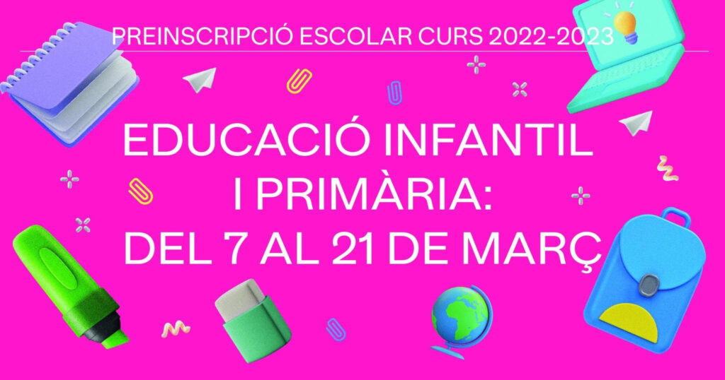 La sol·licitud de preinscripció d’educació infantil i primària l’has de presentar del 7 al 21 de març de 2022.