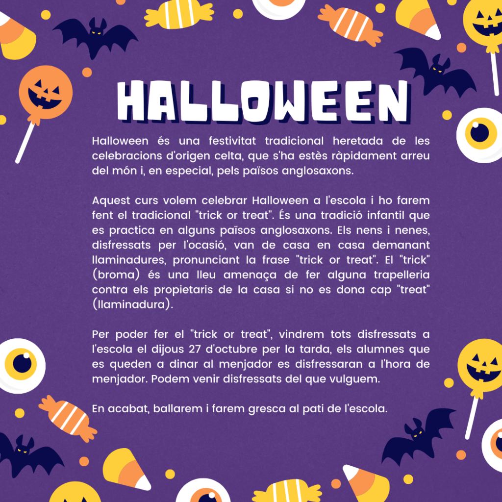HALLOWEEN Feu un comentari / Per Escola Rafael Casanova / 13 d'octubre de 2022 / 1r 2n 3r 4t 5è 6è Anglès a Infantil Cicle Mitjà Comunitat de grans Comunitat de mitjans Comunitat de petits I3 I4 I5 Primària
