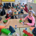 Els nens i nenes de 4t B van celebrar la diada de Sant Jordi creant un drac reutilitzant materials.