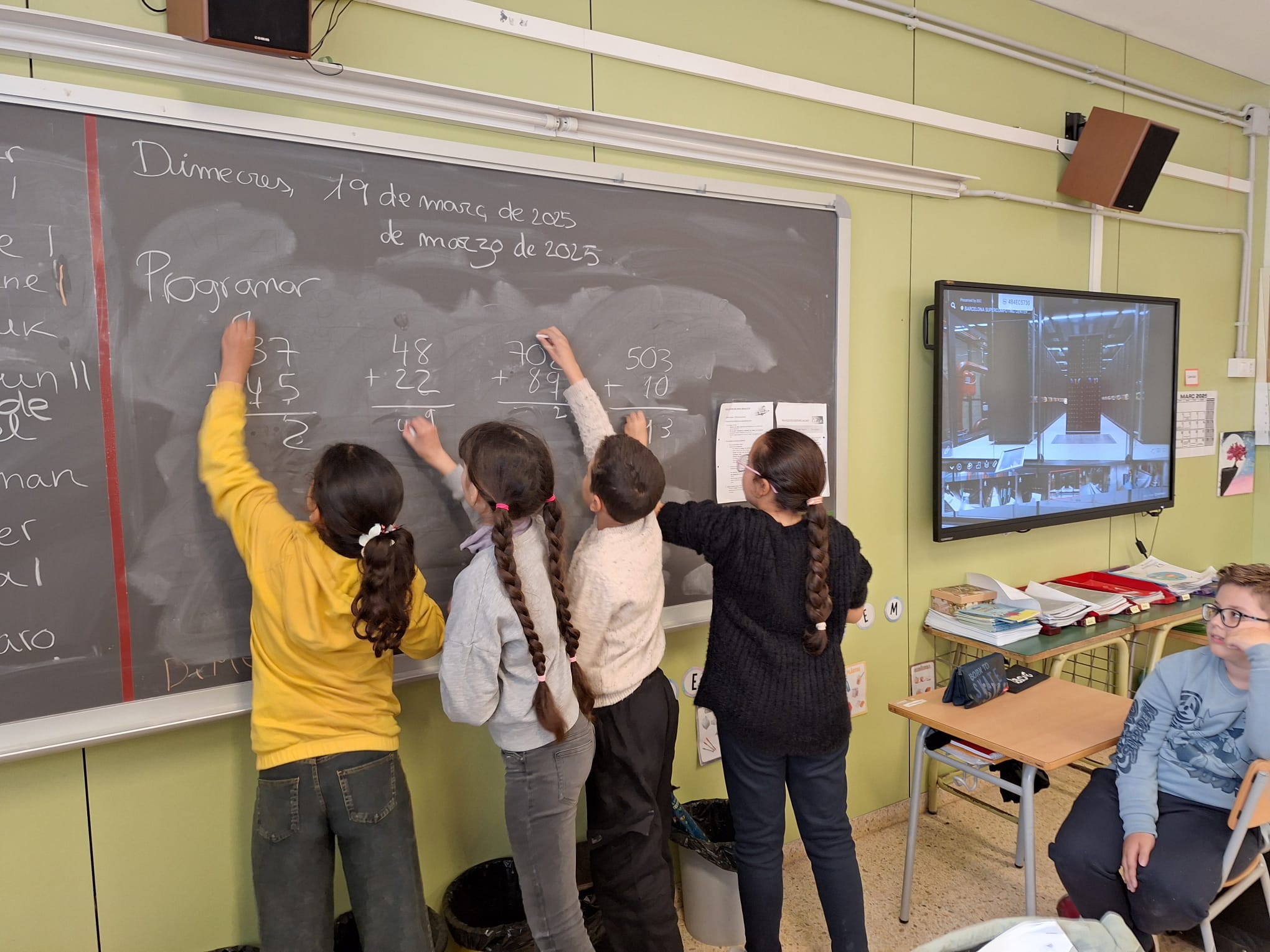 Recentment, hem rebut una visita molt especial relacionada amb el món de la tecnologia i la computació. Ens han vingut a parlar del superordinador, que es troba a Barcelona, i ens han preparat diverses activitats interactives per entendre millor el seu funcionament.