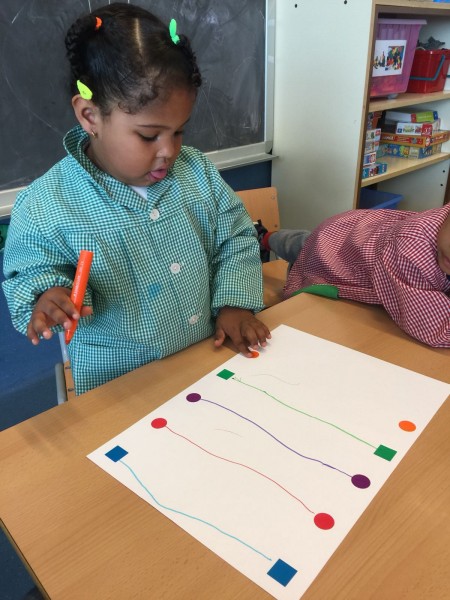 4. RESSEGUIR SENEFES: Per tal d’anar millorant el traç, molt important en l’escriptura, una activitat entretinguda és la de resseguir sanefes o camins. Els podeu fer vosaltres mateixos a casa, amb un paper i un retolador, amb l’ordinador, buscar-ne per internet…hi ha moltes opcions.