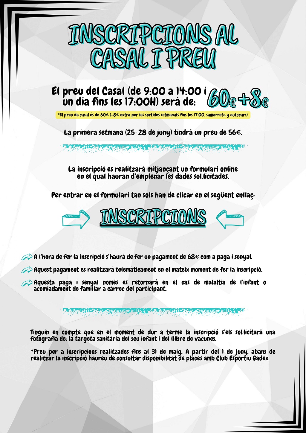 Per fer la inscripció clica sobre l’enllaç: https://clubgadex.playoffinformatica.com/activitat/106/Casal-d-estiu-Escola-Ramon-Llull-2024/