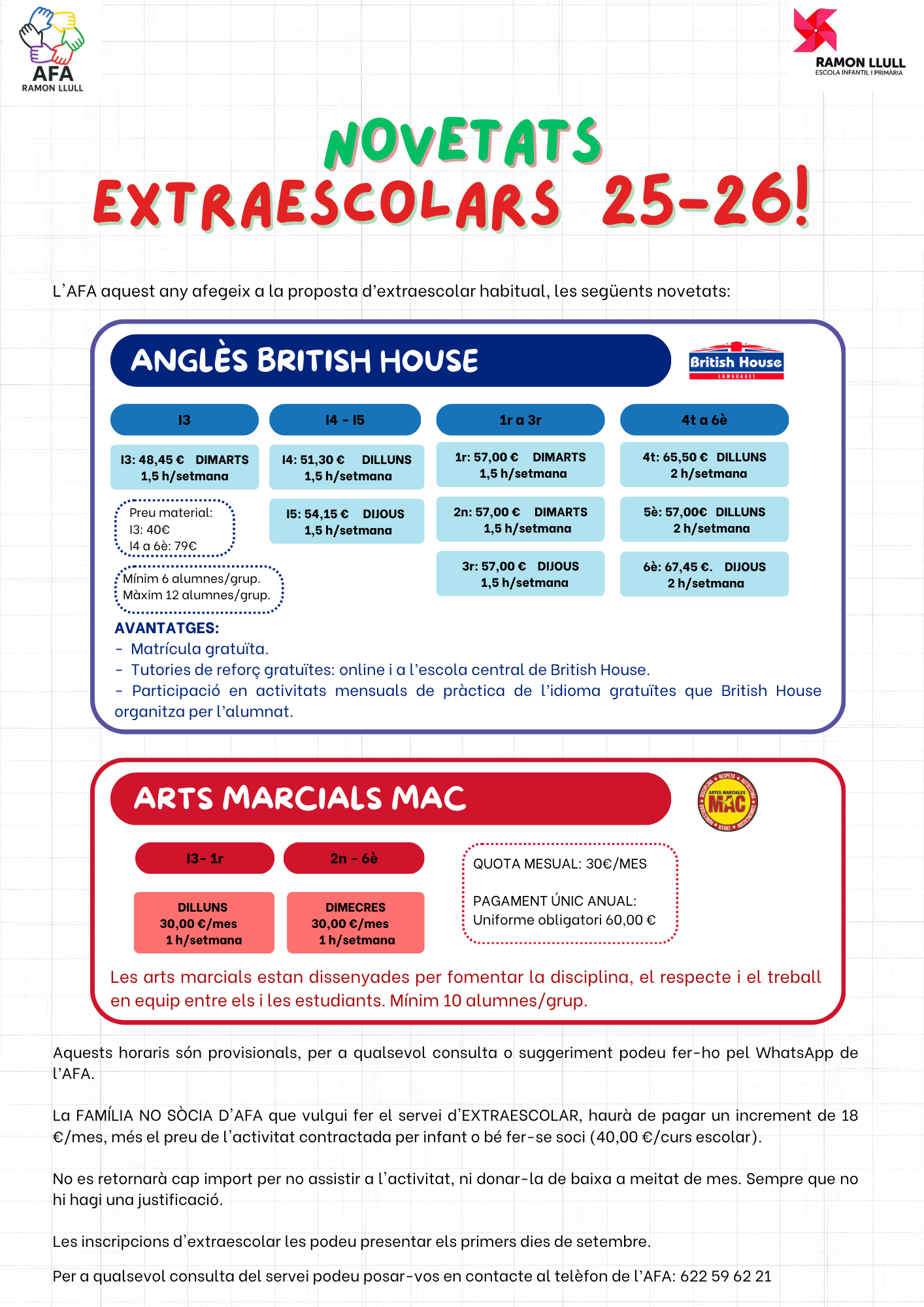 Per qualsevol consulta podeu escriure al WhatsApp de l’AFA: 622 59 62 21.