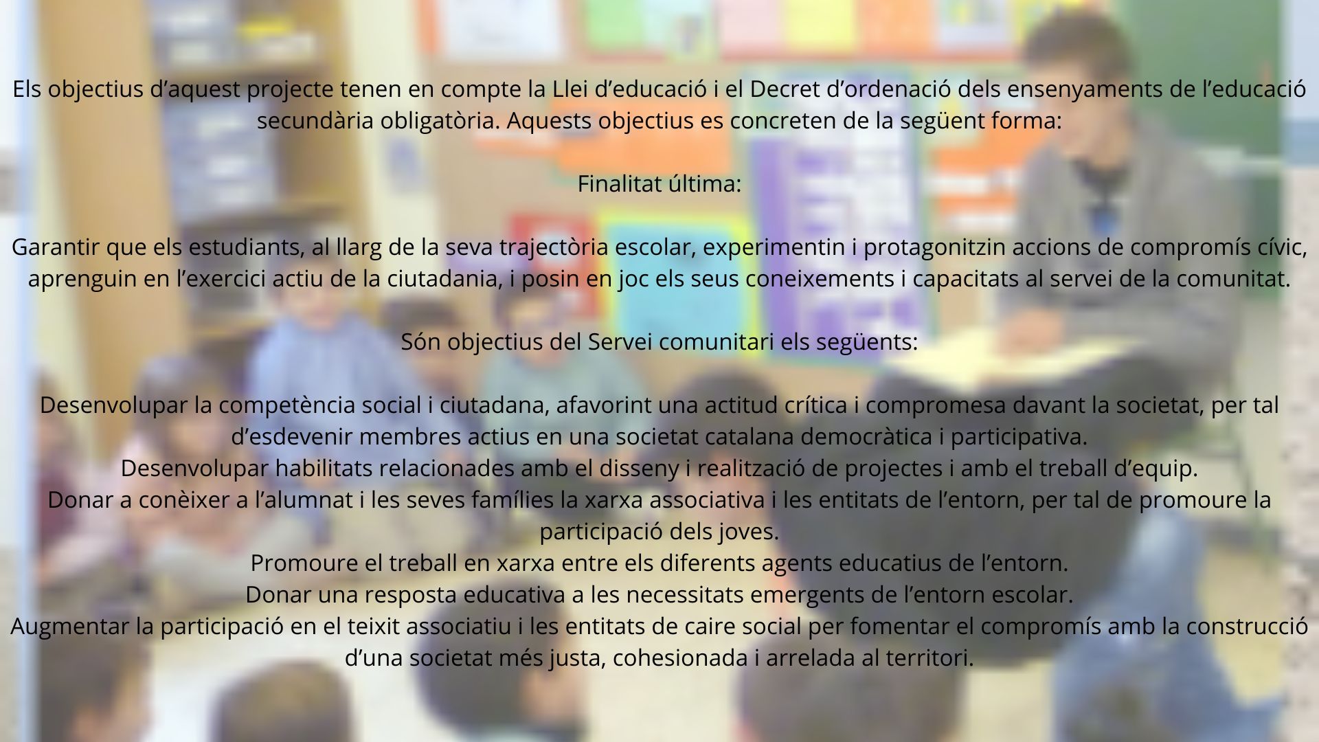 L’escola forma part del Projecte de Servei Comunitari de l’ Institut Duc de Montblanc.
