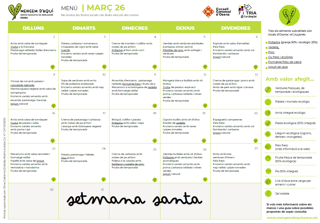 Menú Març 2026