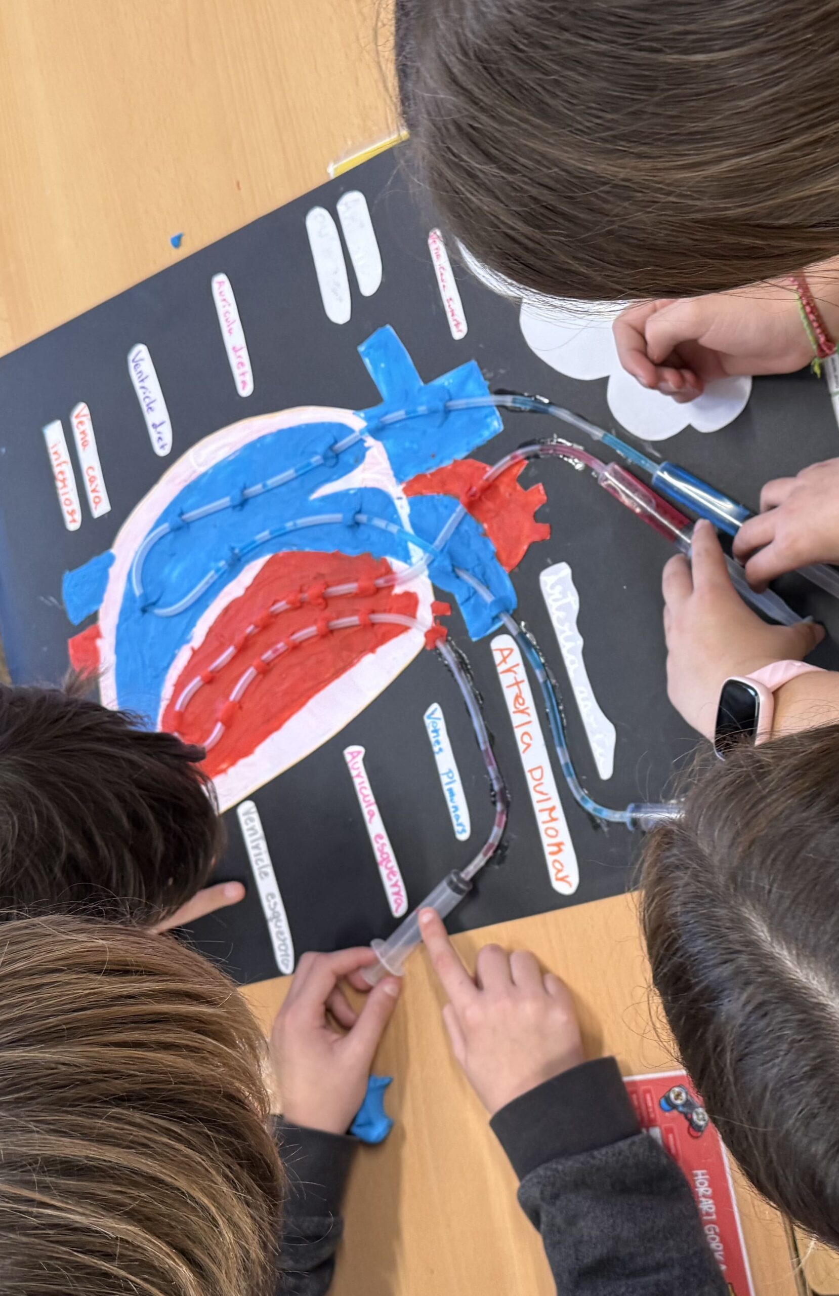 Com a producte final del projecte, l’alumnat ha elaborat unes maquetes dels diferents aparells del cos humà, posant en pràctica els continguts apresos i demostrant la seva creativitat. Aquestes maquetes s’han realitzat mitjançant grups cooperatius, una metodologia que fomenta la participació activa de tots els membres de l’equip.