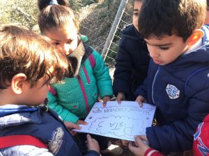 Tió, on ets? aquesta frase la vam repetir moltes vegades mentre caminàvem pel camí de l’aigua tot buscant al nostre tió… Però el tió de la nostra escola és una mica entremaliat i li agrada jugar a fet i a amagar i… sabeu què? ens va deixar pistes pel camí per a què les llegíssim i trobéssim els seus complements: la manta, la barretina i el bastó. El nostre tió, però, ens havia fet una broma i ens estava esperant a l’escola! Quina sorpresa ens va donar quan vam arribar després de l’excursió!