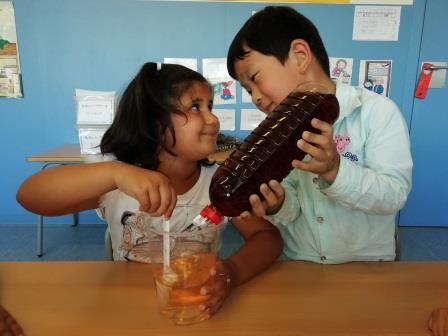 Els nens i nenes de la classe de P5 hem fet barreges a l’aula de ciències.