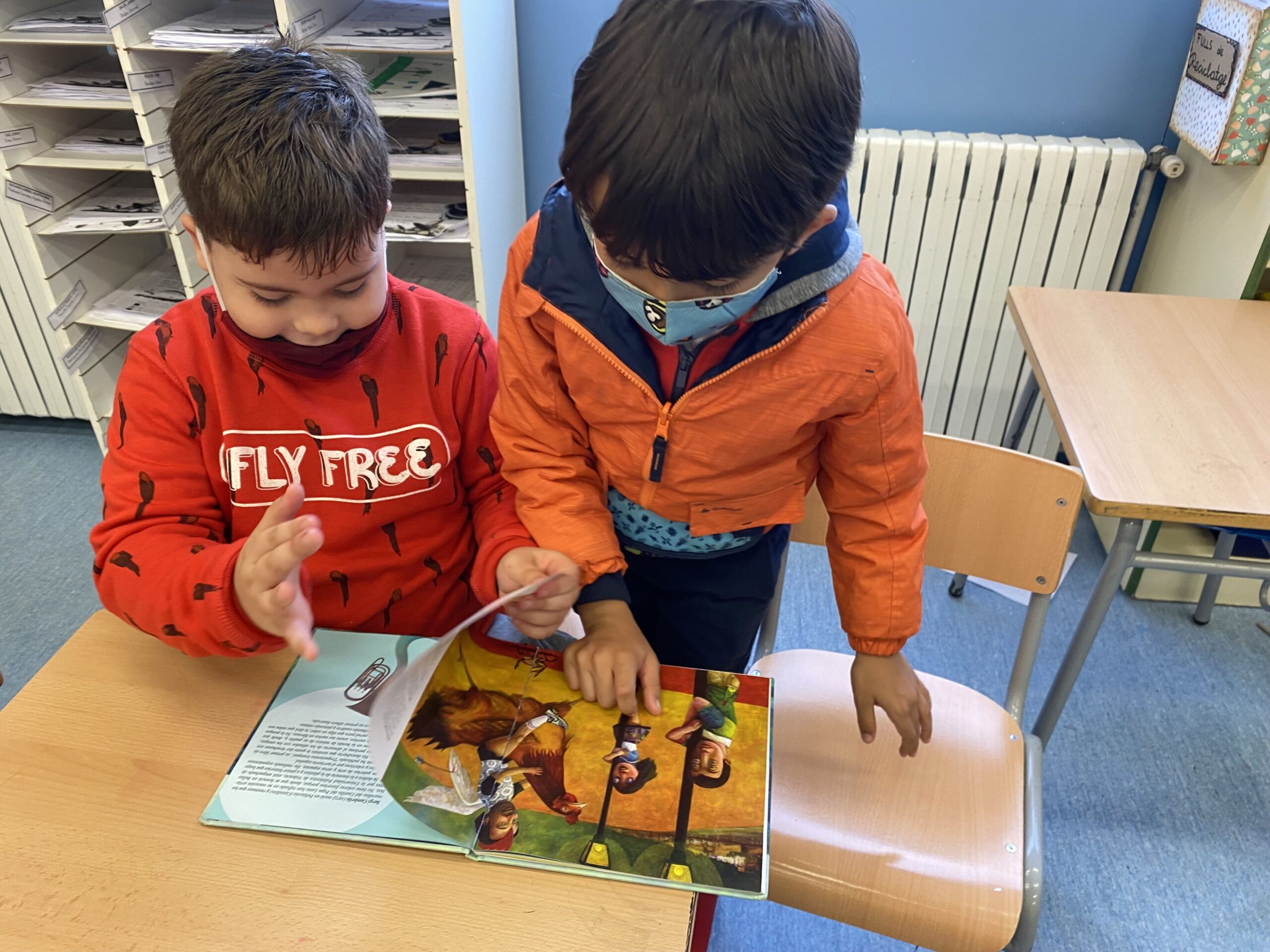 Durant alguna de les estones de lectura que fem cada dia hem estat llegint els nostres llibres estimats. Són els llibres que més ens agraden i volem compartir amb la resta de companys i companyes de la classe. Primer els presentem i expliquem per què ens agrada aquest llibre per animar als nens i nenes de la classe que el llegeixin amb nosaltres. Ens agrada molt aquesta estoneta perquè podem estar llegint i a la vegada comentant, el llibre o conte tranquil·lament amb amics i amigues de manera autònoma. A més a més, ens agrada molt i molt poder estar a terra amb els nostres coixins!