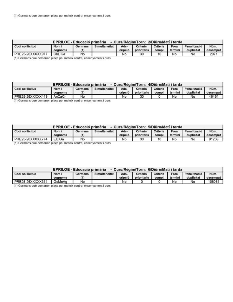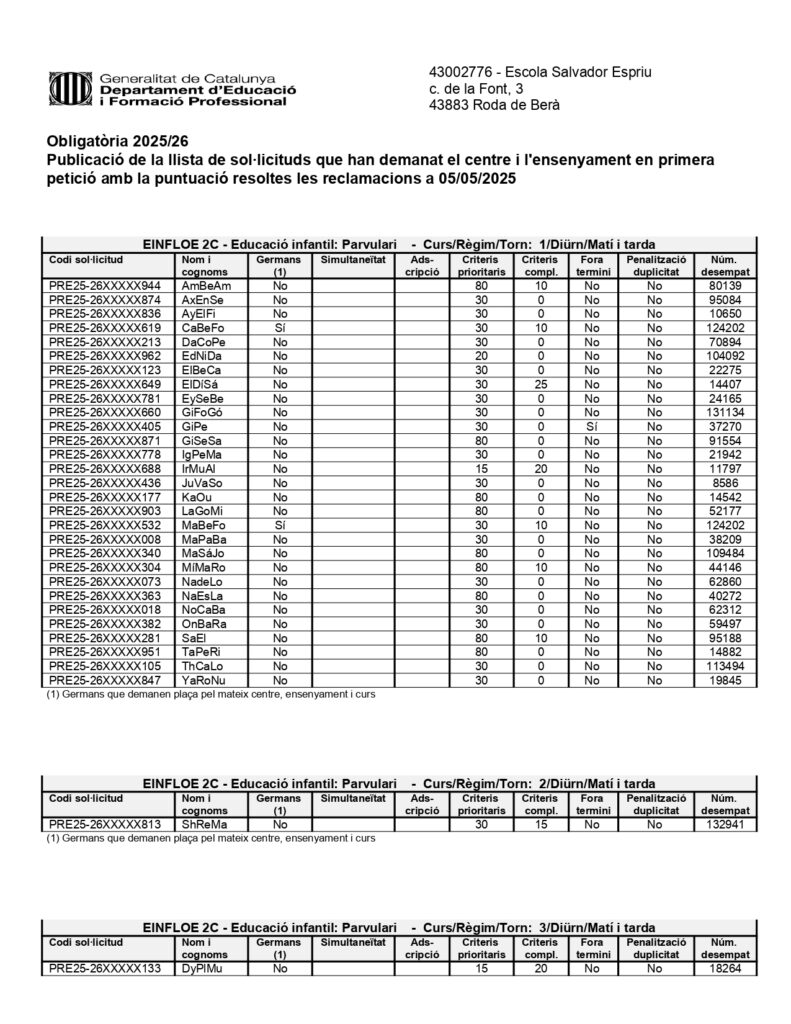 • Llista de sol·licituds amb la puntuació resoltes les reclamacions