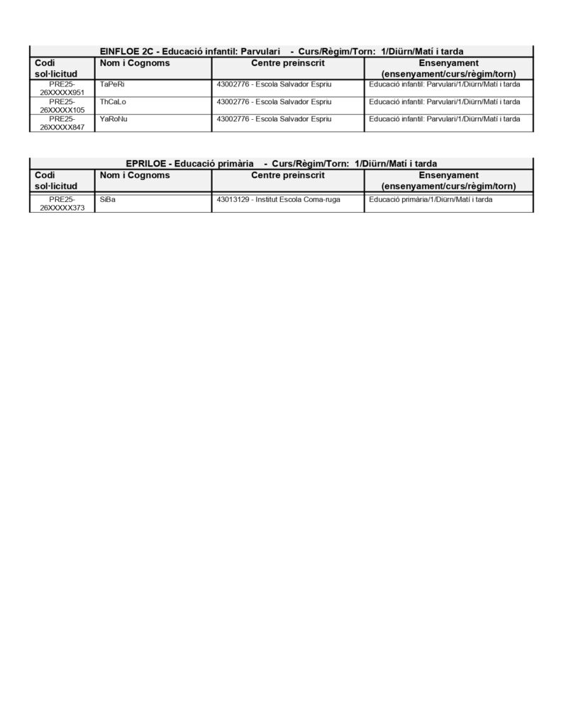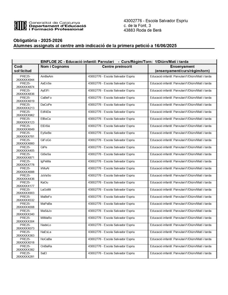 Oferta final, llista admesos i llista d’espera
