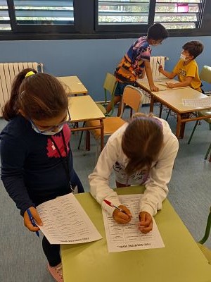 Els alumnes de 4t dediquem una hora a fer classes orals d’anglès. Vam començar amb un joc anomenat Busca algú, on han d’anar preguntant als companys si compleixen les condicions que es marquen a cada pregunta. Els ha agradat molt. Us deixem unes fotografies.