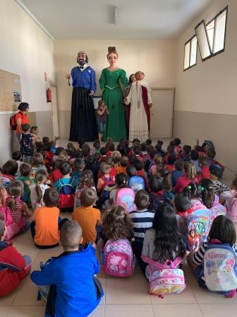 Els nens i nenes d’educació infantil i de cicle inicial hem anat a conèixer en persona als gegants de Roda de Berà. El Rigoletto, la Traviata, el Rodus i la Berània ens han rebut al poliesportiu i, els dos últims, han ballat mentre nosaltres els hi picàvem de mans una cançó. També ens hem vestit de pagesets i pagesetes per preparar-nos per a la Festa Major petita de l’Ecce Homo que es celebrarà aquest cap de setmana. Després hem anat a visitar la Cuca Drac a Ca l’Oliverar, que simpàtica és, ens ha agradat molt!