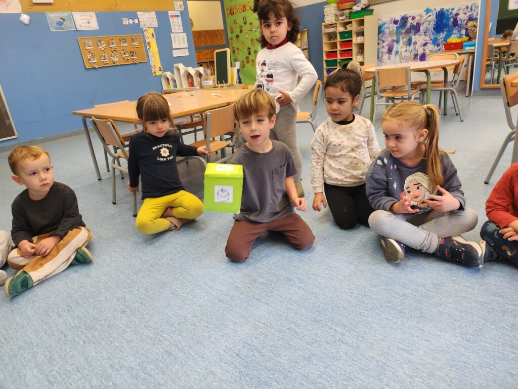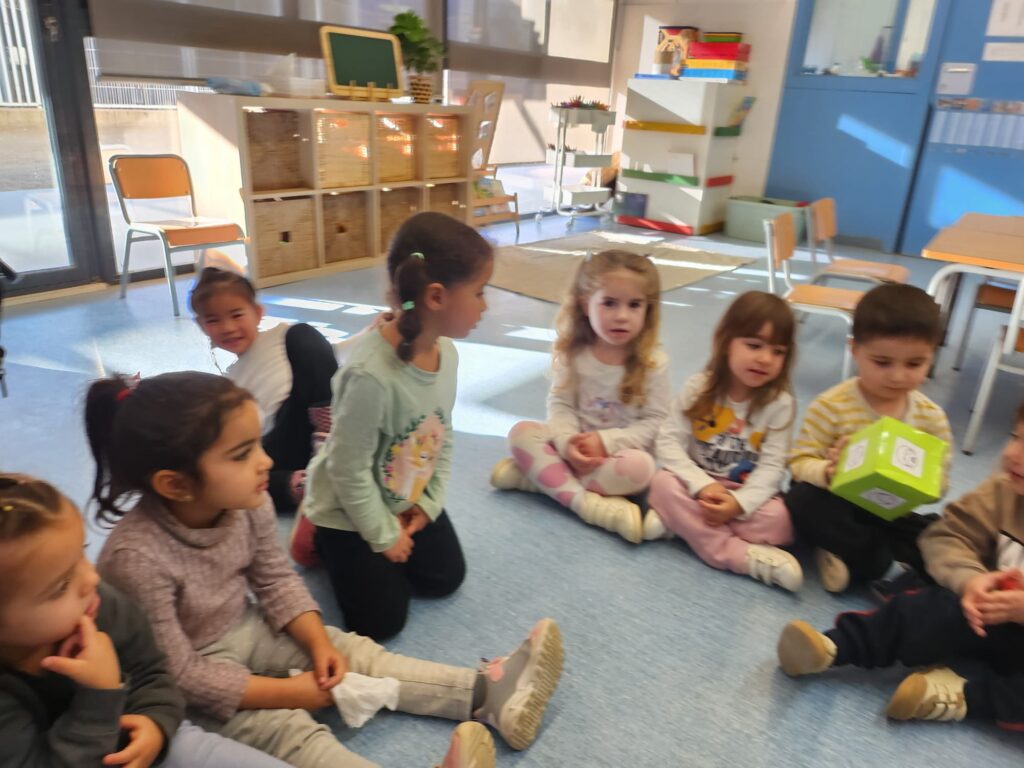A I3 hem treballat la consciència fonològica, hem reproduït de manera pràctica i fent les accions necessàries amb l’ajuda del dau.