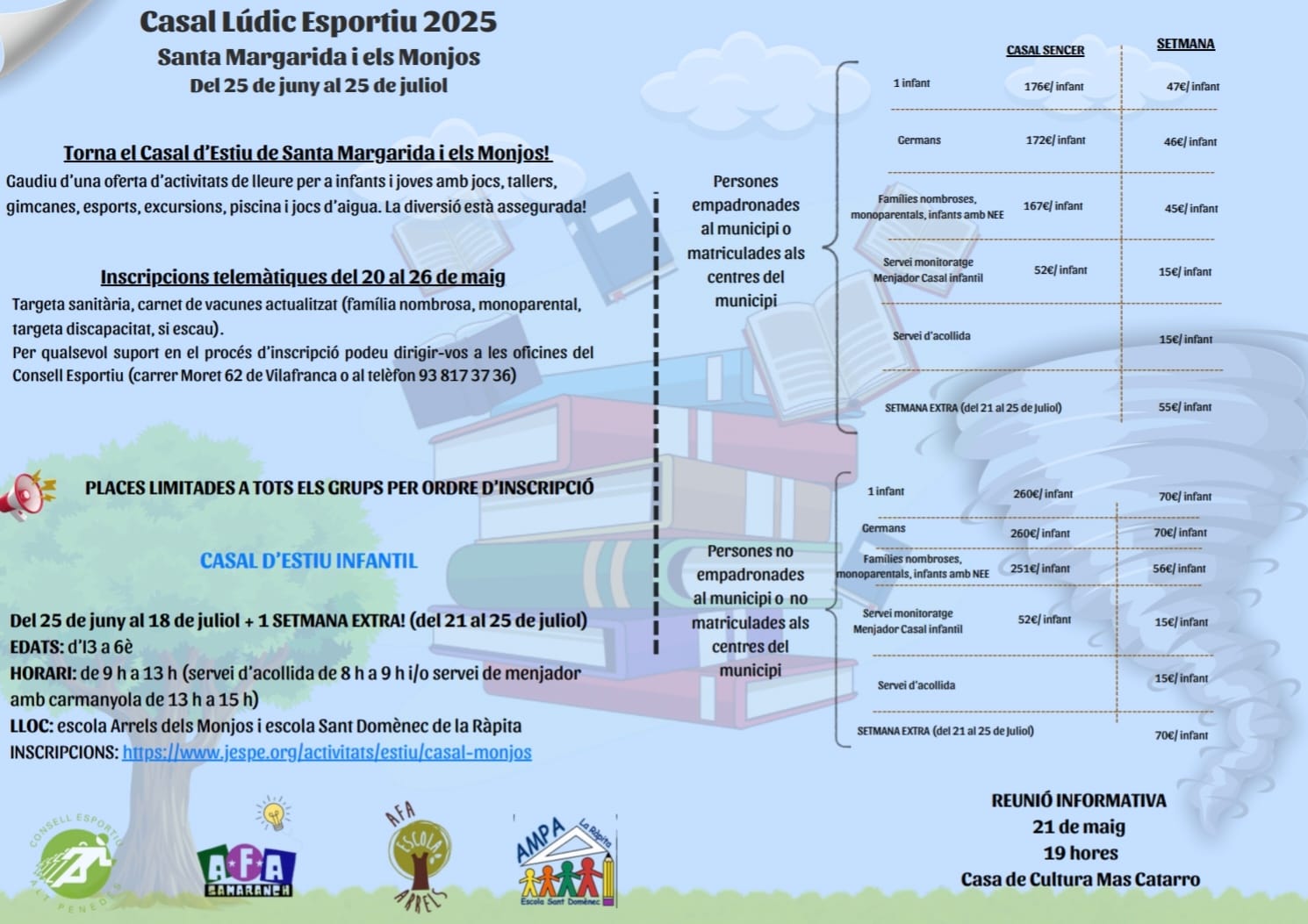 Per a totes les famílies interessades, faran una reunió informativa on s’explicarà el funcionament del casal i es podran resoldre dubtes: