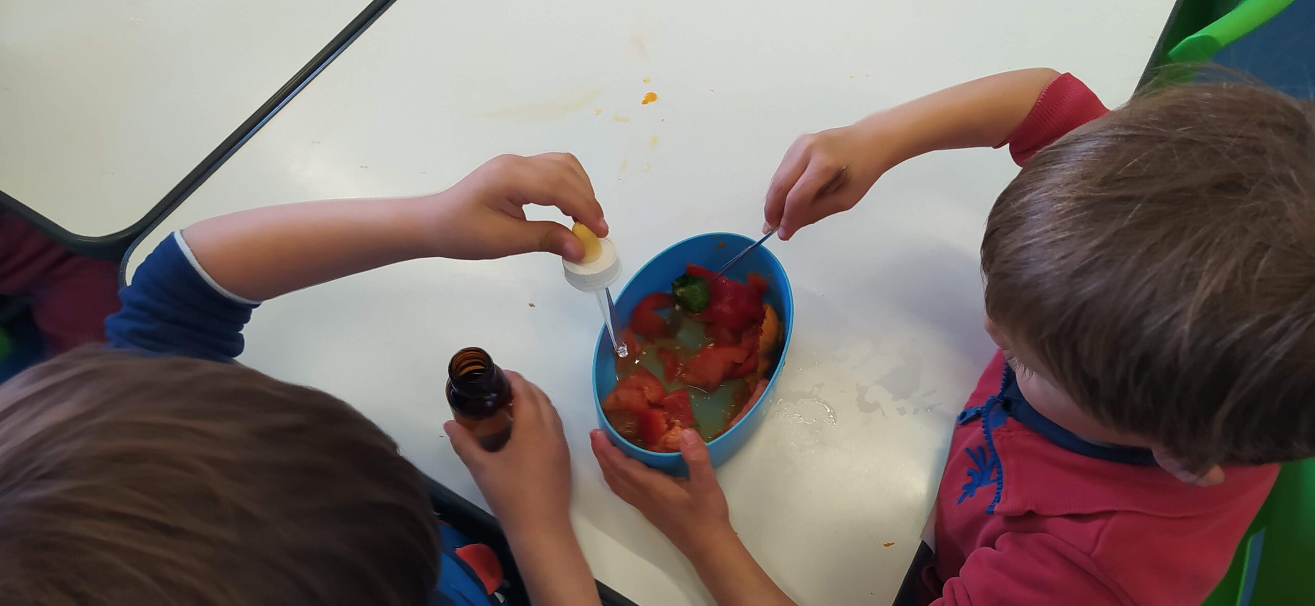 Hem fet un repte fent aigua de colors i després hem estat a l’espai Lab i a l’espai de Llum.
