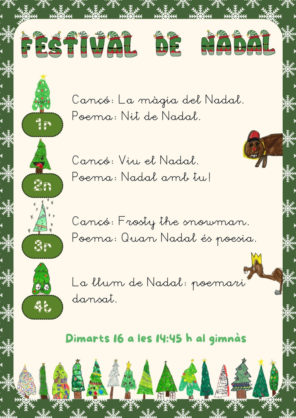 Aquest dimarts 16 de desembre els infants de cicle inicial i cicle mitjà seran els encarregats d’oferir el Concert de Nadal a totes les famílies.
