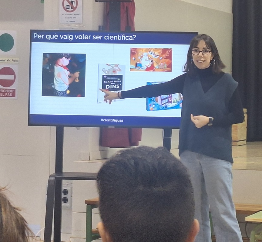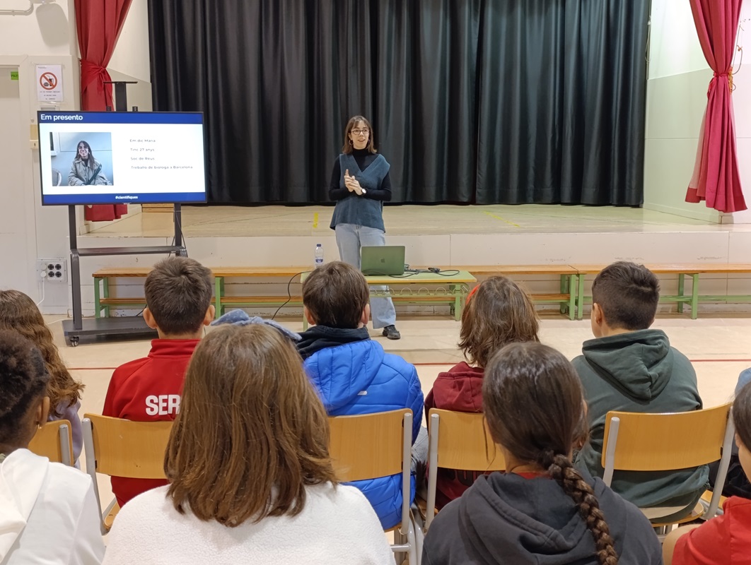 En el marc de la setmana de la Dona i la Nena en la ciència, el passat 9 de febrer, vam organitzar una xerrada amb la Maria Sopena, exalumna de l’escola i Bioinformàtica de professió, amb els infants de cicle superior amb un doble objectiu: