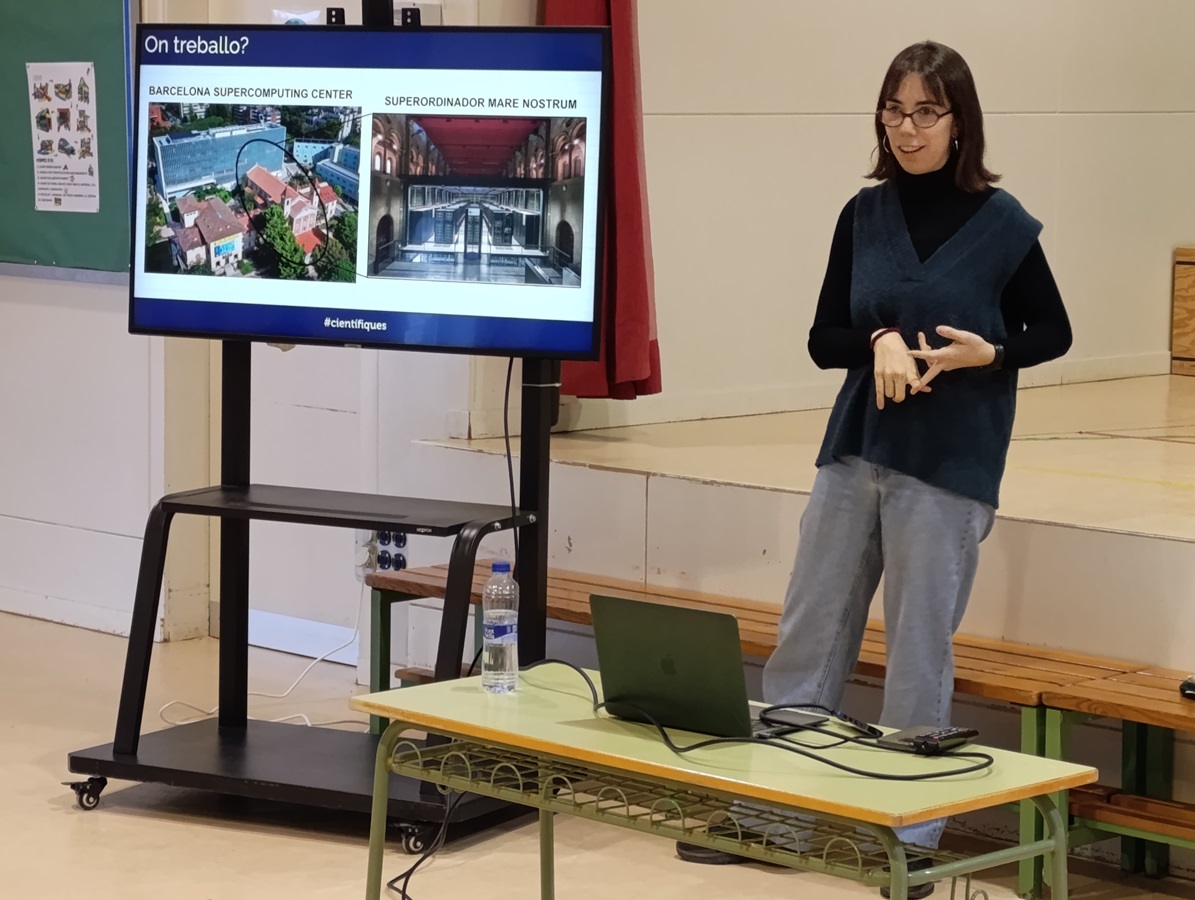 Actualment, ens va explicar que, treballa fent investigació al Barcelona Supercomputing Center amb l’ajuda del “Superordinador Mare Nostrum 5” un macro ordinador equivalent a més de 100.000 ordinadors portàtils junts.