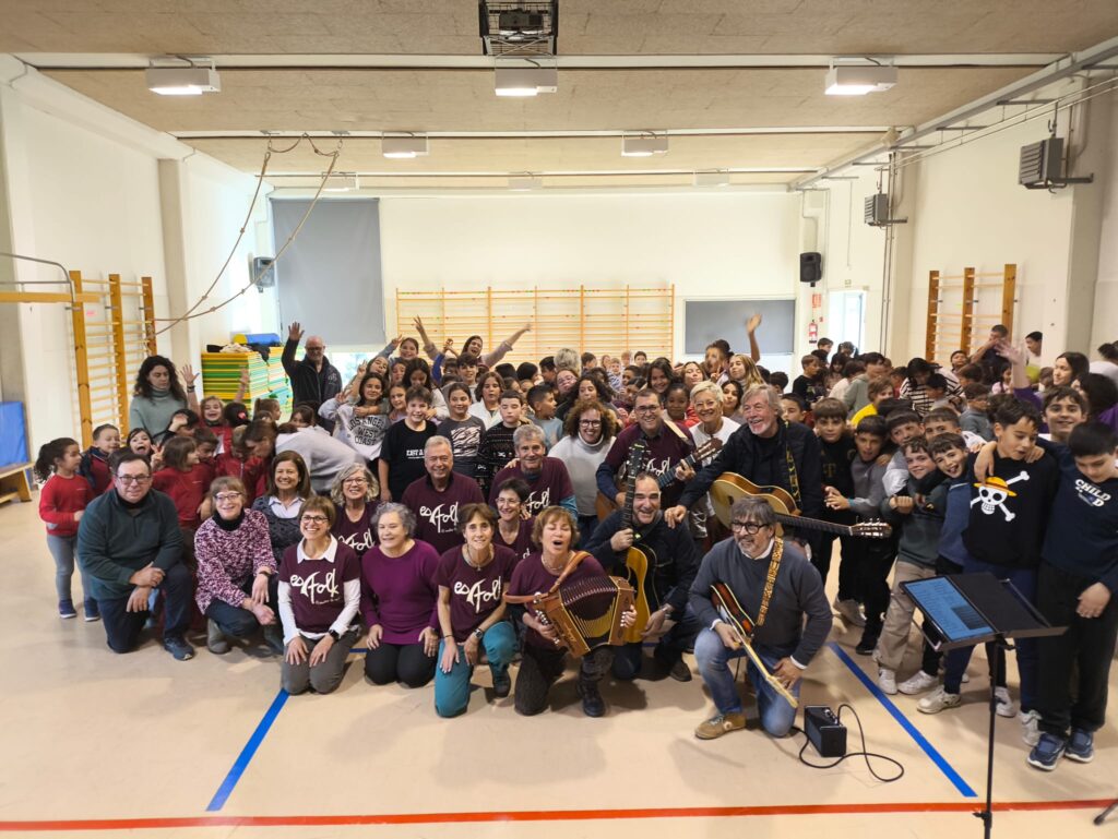 Durant la tarda, els membres d’Escornafolk van oferir als nostres alumnes un recull de cançons populars, tradicionals i de taverna, interpretades amb una proximitat i una alegria contagioses. Els nens i nenes van cantar, van picar de mans i van viure una estona plena de calidesa, música i complicitat. Sens dubte, va ser una experiència preciosa i molt enriquidora per a tothom.