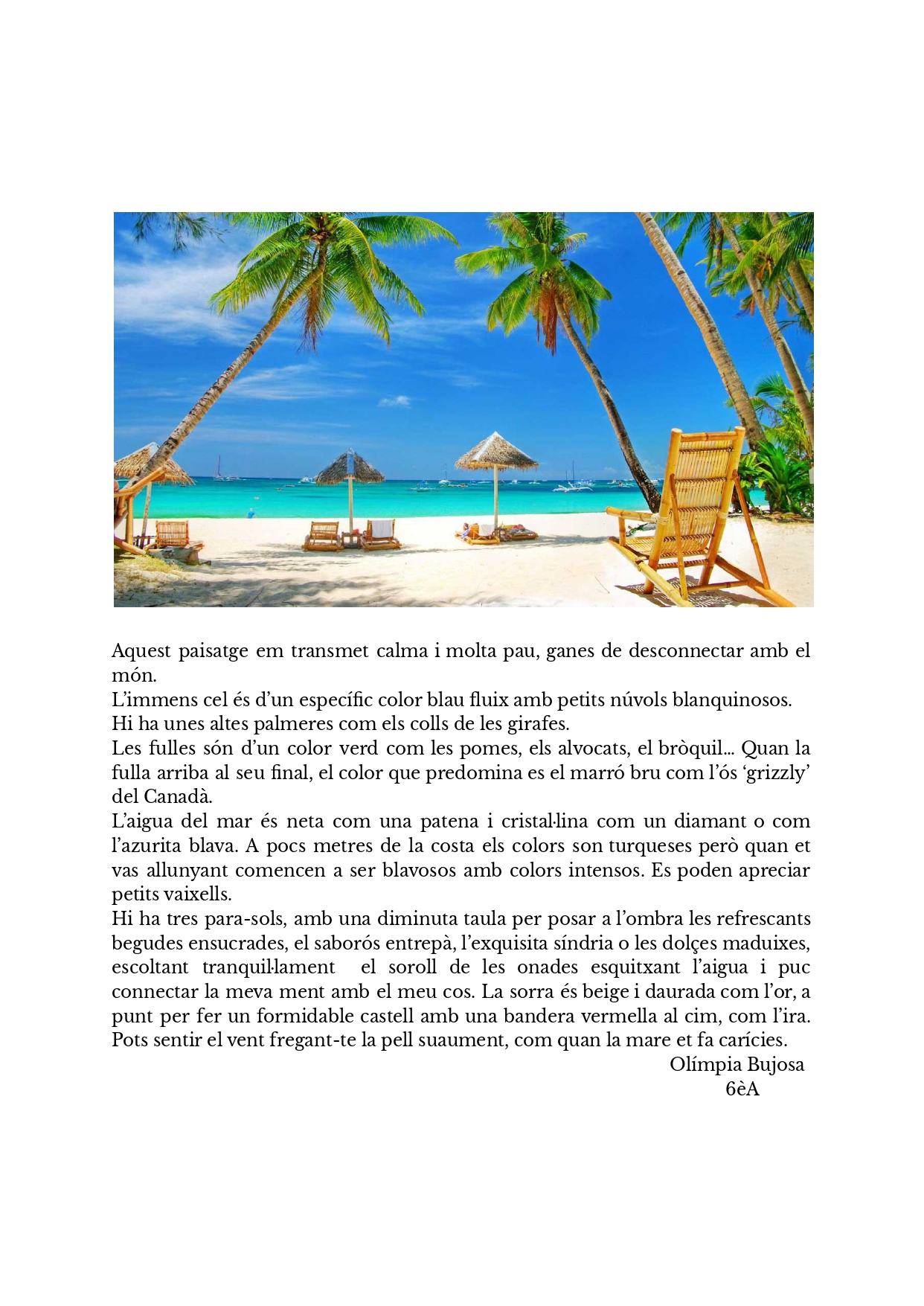 Aprenem a fer descripcions de paisatges utilitzant adjectius i tenint en compte totes les sensacions, no només allò que podem veure amb els nostres ulls, sinó també allò que podem olorar, escoltar …