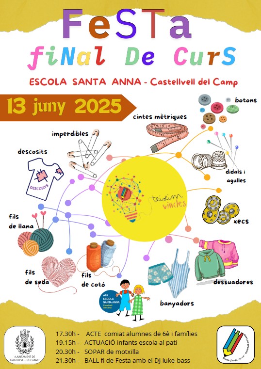 Sota el lema “Teixim vincles”, el festival va començar amb una benvinguda molt especial: un diàleg entre els alumnes de 6è i d’I3, que va emocionar a tots els assistents. Grans i petits van recordar la importància dels lligams que es construeixen al llarg dels anys a l’escola, amb paraules senzilles i tendres que van arribar al cor de tothom. A continuació, tots els cursos de l’escola van pujar a l’escenari per oferir les seves actuacions musicals, preparades amb il·lusió i esforç durant setmanes. Cada grup va interpretar una cançó relacionada amb la temàtica del vestir i el cosir, amb peces com “El vestit d’en Pasqual”, “El barret d’en Peret”, “Vint-i-un botons” o “Pantalons curts i els genolls pelats”, entre moltes altres. Cada actuació va ser única, i entre totes van construir un mosaic sonor ple de ritme, color i simbolisme. Un dels moments més especials de la tarda va ser la presentació de la cançó “Som els de sisè”, una peça creada íntegrament pels alumnes de 6è. La lletra va ser escrita de manera col·laborativa durant les sessions de classe, i la base musical va ser generada amb l’ajuda d’un programa d’intel·ligència artificial, en una proposta educativa innovadora i engrescadora. Amb el suport dels mestres Joan Maria Sánchez, David Borràs i Miquel Prats, els alumnes van donar forma a una cançó que repassa tota la seva trajectòria vital i emocional a l’escola, des de P3 fins a 6è. Interpretada en directe davant de totes les famílies, va ser un moment ple de sentiment i orgull que va arrencar forts aplaudiments i més d’una llàgrima. |