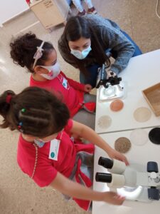 TAMBÉ HI HAVIA MICROSCOPIS I LUPES PER ANALITZAR I VEURE DE MÉS A PROP DIFERENTS MATERIALS COM PEDRES, MINERALS, PETXINES I OSSOS.