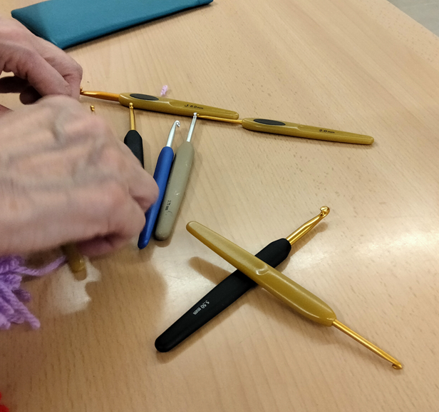 | Les agulles per fer ganxet | Ens fa una demostració de l’art de fer ganxet | Les seves creacions artesanes de ganxet |