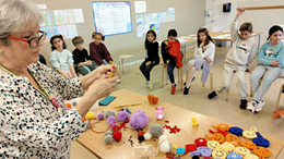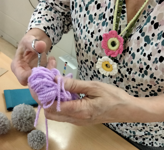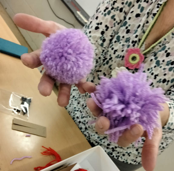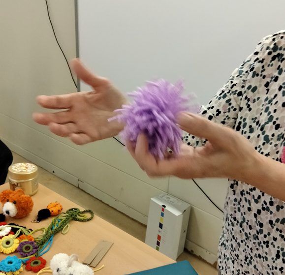 Dit i fet, el passat divendres 4 d’abril va venir a l’escola i ens va explicar el procés de fer petites creacions artesanes amb fil de cotó i llana.