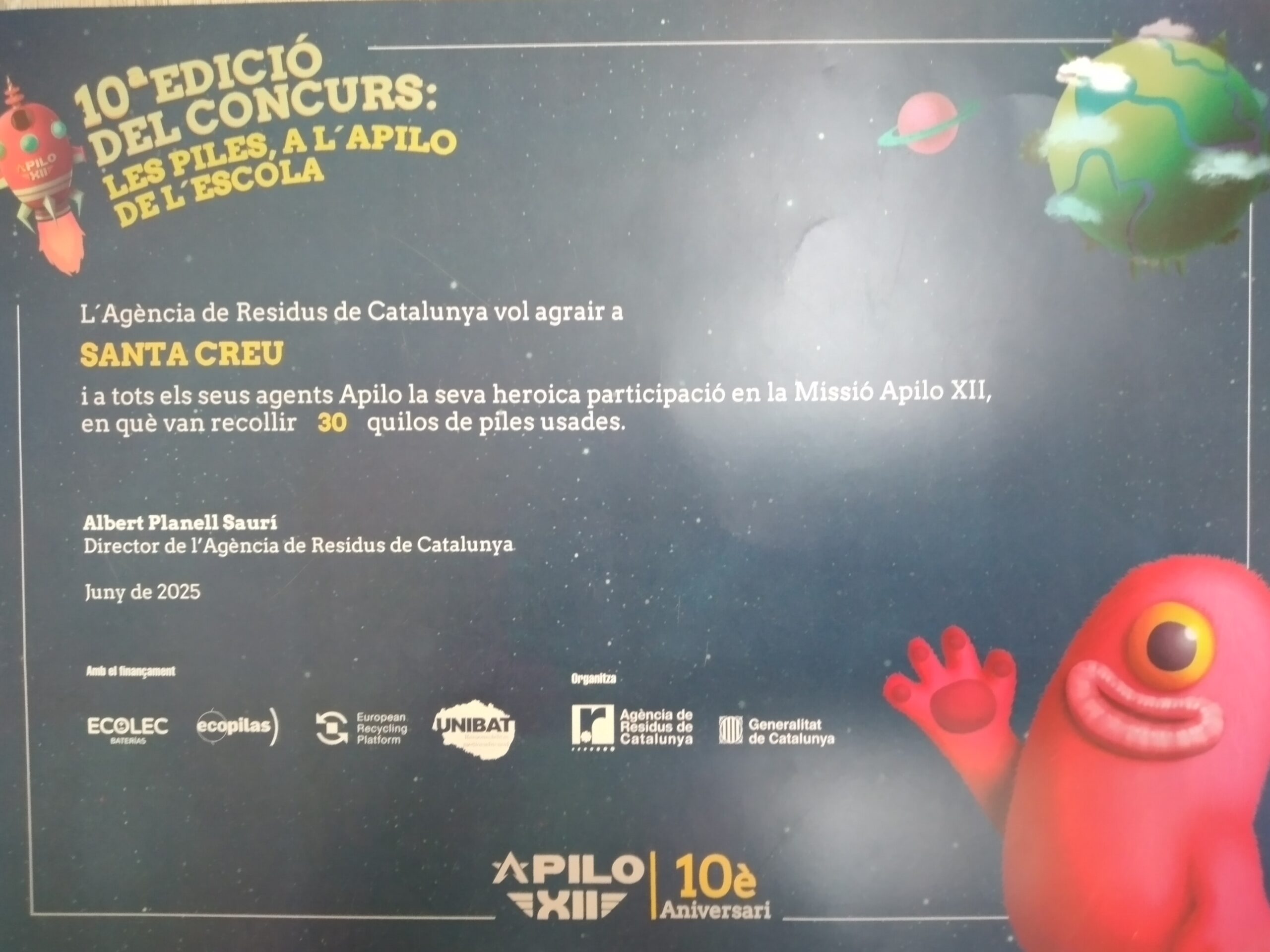Felicitem a tota la Comunitat Educativa per la gran implicació en la recollida de piles usades. El curs 24/25 vam recollir 30 quilos de piles! 10 més que el curs anterior. Enhorabona per la bona feina. Us animem a continuar portant les piles ja usades a l’escola i contribuir així a fer un món més sostenible.