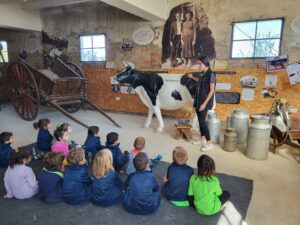 També tenen una vaca en mida real i els alumnes la van poder munyir i van observar les seves parts.
