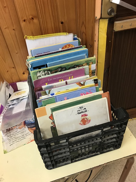 Aquest curs a diferència dels altres cursos, la biblioteca es dins a les aules. Cada aula té “ El racó de la biblioteca”, on hi ha un espai, caixa… on hi ha llibres de la biblioteca del centre, adients a cada nivell.
