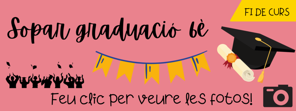 El passat dissabte 3 de juny vam celebrar el sopar de comiat de la graduació de 6è. Us deixem amb mooooooooltes fotos, molt maques, divertides i emotives, que el fotògraf va fer durant tota la tarda d’activitats i tota la nit, i un vídeo resum.
