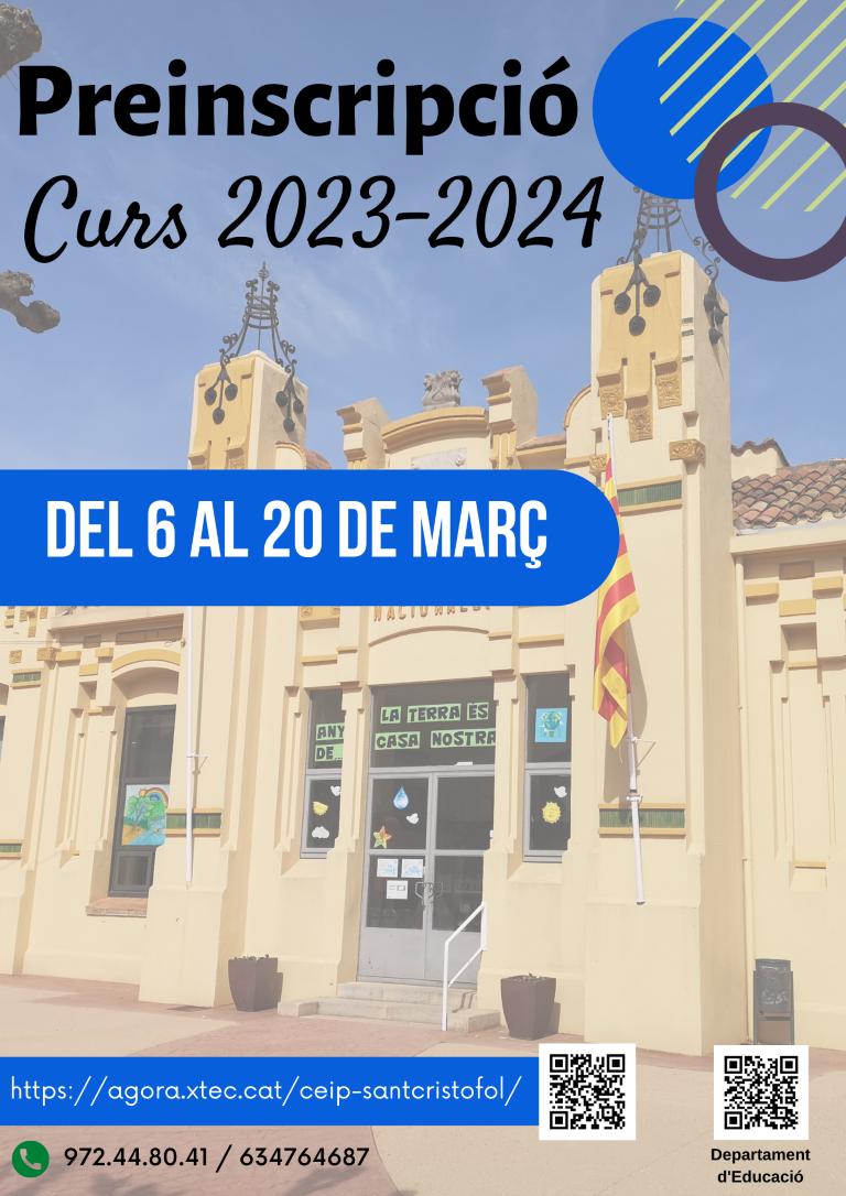 COMENÇA LA PREINSCRIPCIÓ PEL CURS 2023-2024 Feu un comentari / Per admin / 28 de febrer de 2023 / General