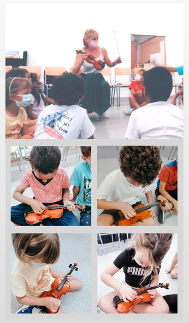 A 1r i 2n de Primària els/les alumnes realitzen una sessió setmanal en mig grup de VIOLÍ amb el Mètode Suzuki (s’aprèn a tocar el violí d’oïda, de la mateixa manera que s’adquireix la llengua materna, sense necessitat de conèixer el llenguatge musical) amb l’especialista de Música de l’escola.