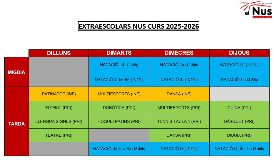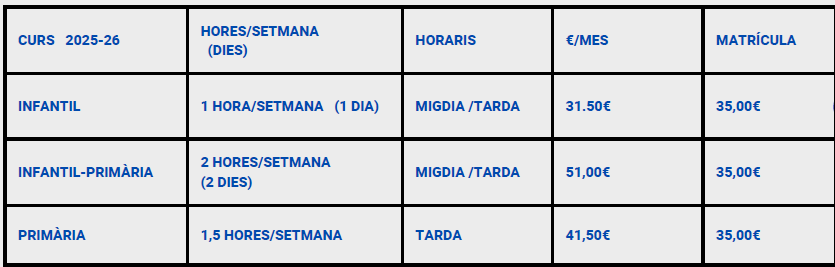 PREU TALLERS EXTRAESCOLARS DEL NUS: