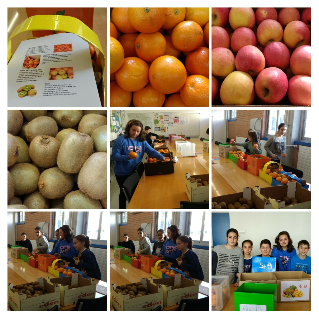Aquest dijous, alumnes de 5è C han estat els encarregats de repartir la fruita entre els seus companys: peres, pomes, maduixes i taronges.