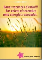 Benvolgudes famílies us desitgem unes molt bones vacances d’estiu. Molta sort als que comenceu una nova etapa i ens retrobem al setembre amb la resta d’alumnat.